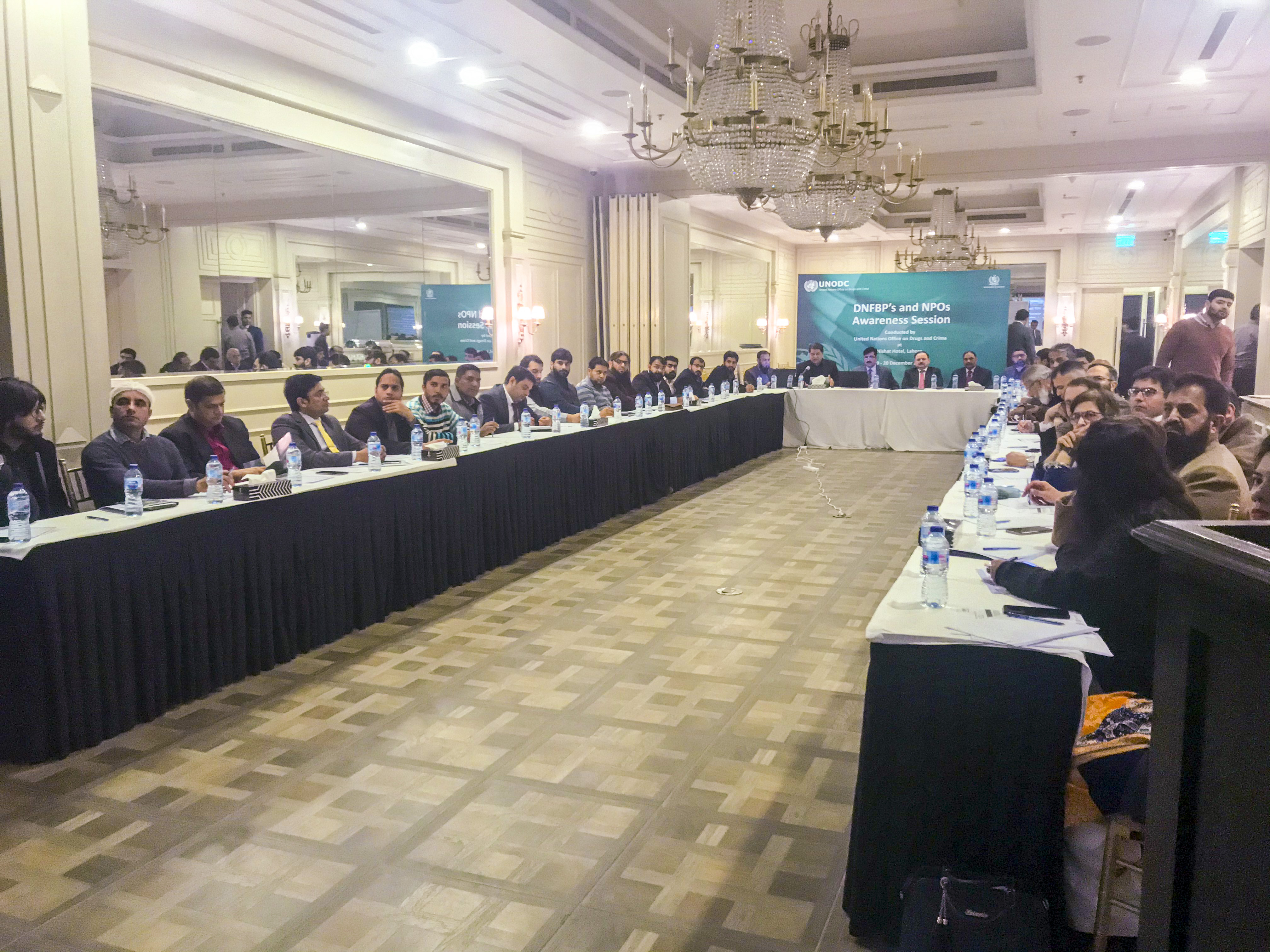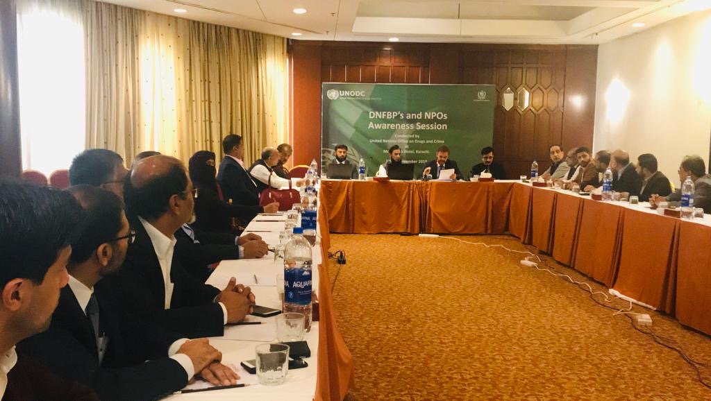 November – December 2019 : Financial Monitoring Unit (FMU) in coordination with United Nations Office on Drugs and Crime (UNODC) conducted Capacity Building and Awareness Sessions on AML / CFT for Designated Non-Financial Businesses and Professions (DNFBPs) and Non-Profit Organizations (NPO) by at Quetta (4-5 November), Karachi (21-22 November), Peshawar (5-6 December) and Lahore (19-20 December). The participants were apprised on AML / CFT regime of Pakistan, FATF Requirements and the functions of FMU. The number of participants from DNFBPs and NPOs attended the sessions and shown their interest to conduct session awareness sessions in future.